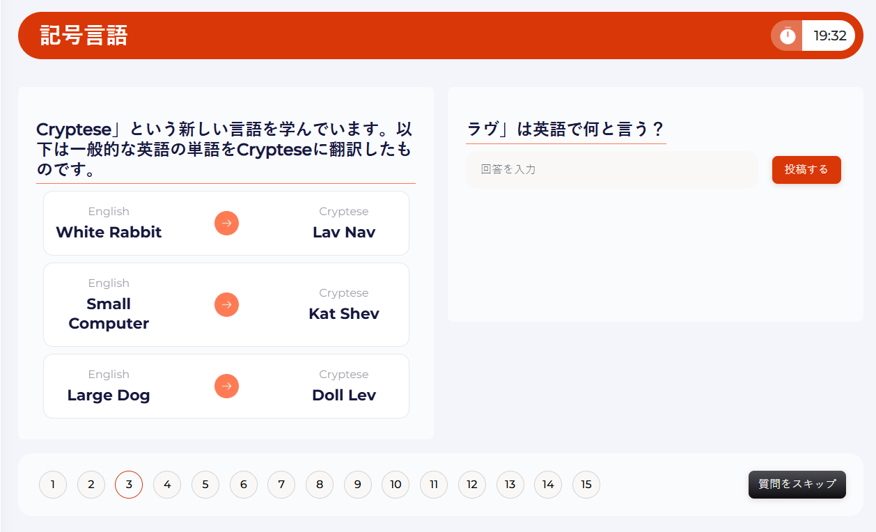 記号言語の問題では、物、概念、またはアイデアの間の関係性を描写するために記号を使用します。異なる記号の「辞書」が重なり合っている複数の列から、訳語を特定してください。
